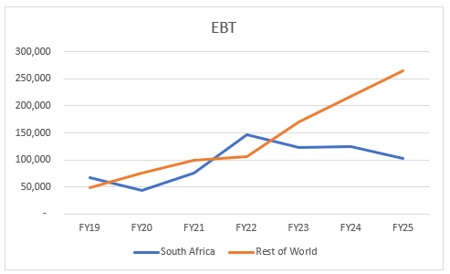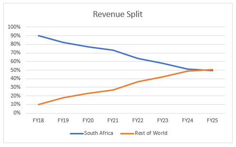 Because it is still trading at South African multiples, you get the opportunity to invest in this UK-focused serial acquirer with a giant net cash pile and a near-decade track record of growing EPS at a 30% CAGR (or 25% in USD terms), for only 5x FY26E FCF.